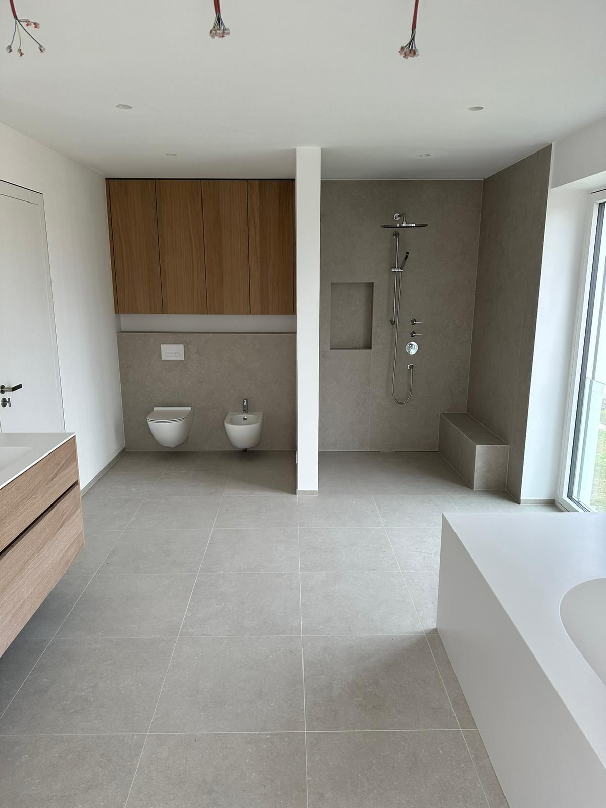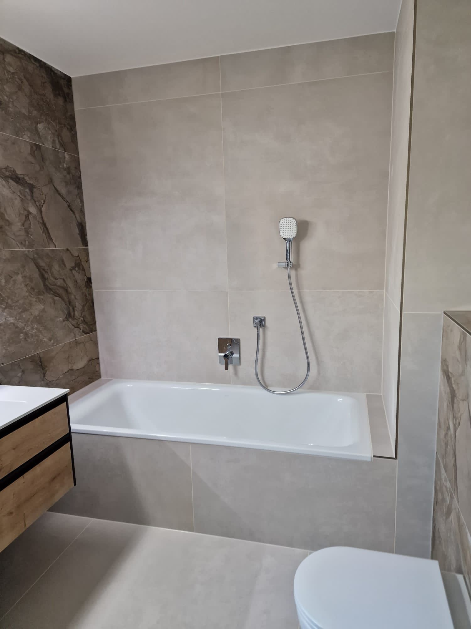Unsere Fliesen waren nicht leicht zu verlegen (Boden 120cm x 120cm, Duschfliesen über 200cm), der Fliesenleger hat alles mit Bravour gemeistert. Auch die Silikonfugen und Fugen sind sehr schön gemacht. Immer wieder Absprache gesucht, wie wir etwas wollen, tadellos.